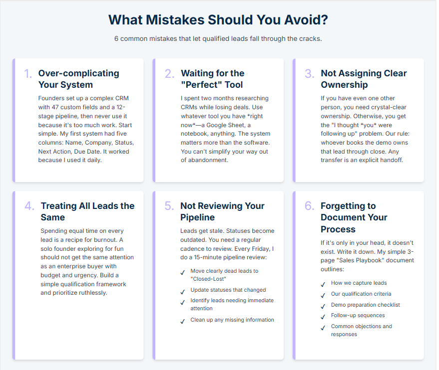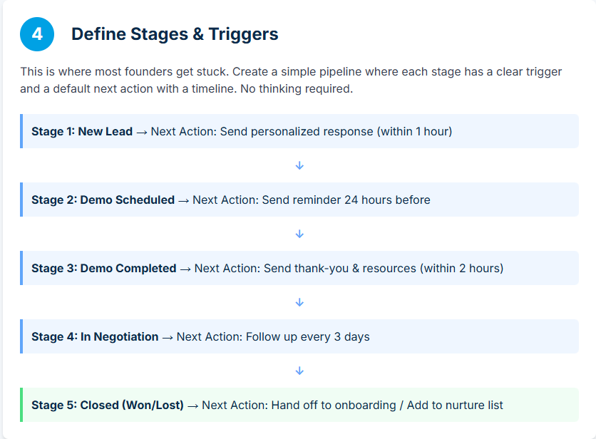 This is where most founders get stuck. They capture leads but don’t have a clear process for what happens next.