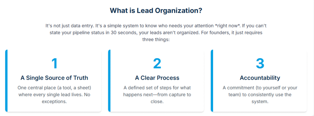 Look, I get it. Reading about lead organization is one thing. Actually implementing it when you’re drowning in product issues, customer support, and everything else? That’s another thing entirely.