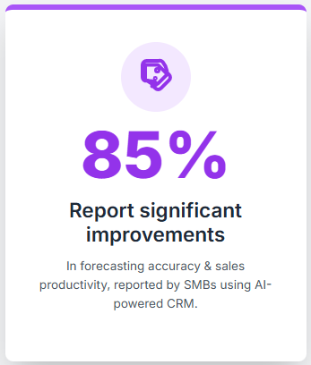 According to Salesforce research, 85% of SMBs using AI in CRM report significant improvements in productivity and forecasting accuracy.