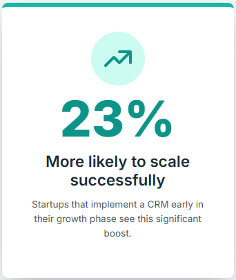 A Litslink study found that startups implementing CRM early are 23% more likely to scale successfully beyond initial growth phases. That’s because they build reliable processes from day one instead of scrambling to fix broken workflows later.