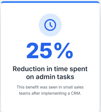 I used to spend at least five hours a week updating spreadsheets, sending follow-up emails, and hunting for information scattered across email threads and Slack messages. Now? My CRM automates demo confirmations, follow-up reminders, and data entry. According to one report small sales teams using CRM reduce time spent on administrative tasks by 25%—that’s more than a full workday every week that you can reinvest in actually selling.